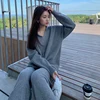 Women Sweater Set Casual Loose 2 Pieces Autumn Winter Sailor Collar Knitted Pullovers & Straight Pants 2022 Female Knitted Set