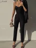 Macheda Autumn women's two-piece low-cut halter top with high-waisted stretch slim straight pants commuter style women's suit