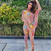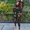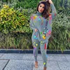 Women Two Piece Sets Tracksuits Causal Printed Suits Batwing Sleeve Turtle Neck Top & Skinny Pants Set Matching Sets Streetwear