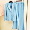 2022 Spring OL Suit Chic Women's High Quality Sky Blue Blazers Jackets+Pants Two Piece Set F029