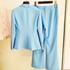 2022 Spring OL Suit Chic Women's High Quality Sky Blue Blazers Jackets+Pants Two Piece Set F029