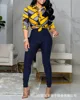 Women's color contrast printing suit