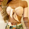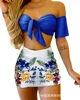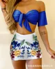 Two-piece beige one-shoulder printing suit