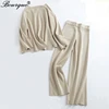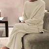 Two Pieces Set Women Knitted Tracksuit O-Neck Sweater + Wide Leg Pants Solid Color Elegant Soft Casual 2022 Female Pullover Suit