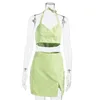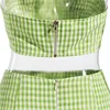 Women Suits With Skirt Green 2 Pieces Sets High Waist Split Mini Skirt Casual Plaid Cropped Tops Chic Lady Tanks And Skirt Suits