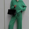 Za Green Loose Shirt Suit Causal Women 2021 Spring And Autumn Solid Long Sleeve Suits High Waist Vintage Style Women Suit