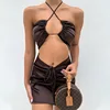 Sexy Cut Out Dress Suits Halter Top And Mini Skirt Set Backless Elegant Club Party Evening Set Bandage Outfits Two Piece Set
