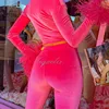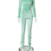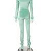 Solid Skinny Pant Set Long Sleeve Tassel Squart Neck Top Elastic Waist Bandage Pant 2021 Casual Fashion Diamond Green Pant Set