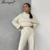 Women's Hoodies Two-piece Set Elegant 2022 New Fashion Autumn Winter Sports Causal Sweater Pullover + Wide Leg Pants Female Suit