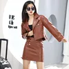 Spring Autumn Chic Women's Suits High Quality Genuine Leather Jackets+A-line Skirts Tow Piece Set C703