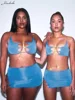 Macheda Spring 2022 gold chain cross halter crop top cut-out chest sexy fashion women's top and low-waisted skirt two-piece set