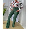 2022 new ladies casual suit printed stand-up collar long-sleeved shirt and wide-leg pants two-piece suit