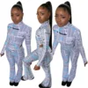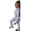 RStylish Letter Printing Long Sleeve Bodysuits And Flare Pants Two Piece Set Women Clothes Casual Fitness Tracksuit
