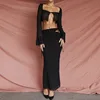 DFLlifes Hollow Out Bandage Women's Suits Transparent Long Sleeve Solid Sexy Club Female Clothing Slim Suit for New Year 2022