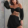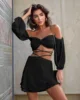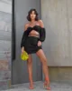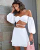DFLlifes Puff Sleeve Bandage Women Suit Off Shoulder Strapless Solid Sexy Club Female Clothing Spring Robe for New Year 2022