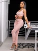 Macheda Sleeveless halterbelt waistcoat slim stretch top with high waist tight women's small leg pants street slim two-piece set