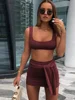 Macheda Spring 2022 Square neck, low crop top, high-waisted fringed belted skirt, women's street chic versatile two-piece set