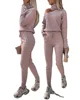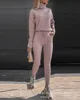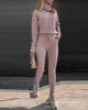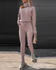 Women' Tracksuit Fall 2021 New High Neck Long Sleeve Pullover Lace Up Pants Casual Knitted Pants Suit