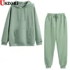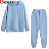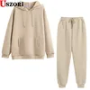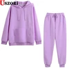 Autumn Hoodies Women Two Piece Set Solid Fleece Oversized Tracksuits Winter Thick Warm Hooded Sweatshirt Jogger Pants Suit