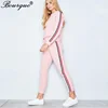 Women Tracksuit 2pieces Set Side Striped O-Neck Hoodies and Pants Fashion Casual Streetwear Spring Autumn Female Pullover Suit