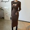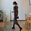 Spring Autumn Women Dress 2 Pieces Set Round Neck Hollow Shawl Shirt and Slim Split Suspender Dresses Sexy Elegant Office Ladies