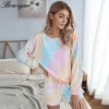 2022 Spring Summer New Women Tracksuit 2 Pieces Set Tie-dye Long Sleeve T-shirt and Shorts Fashion Casual Homewear Female Suit