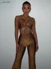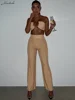 Macheda Spring 2022 necktie cross-laced crop top sexy cut-out crop top high-waisted slim straight pants two-piece set for women