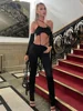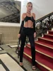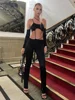 Macheda One-shoulder halter sexy fashion women's three-quarter sleeve top with high-waisted slim trousers two pieces women wear