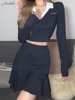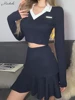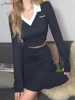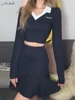 Macheda Spring 2022 V-neck white lapel crop T-shirt with high waist slim pleated skirt women's suit Campus student casual suit