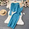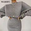 Women Elegant Slim Two Piece Sets Female Sweater Dress Autumn Winter High Waist Knitted Ensemble Femme Medium Long Party Dresses