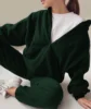 2022 Casual Women Fleece Hoodie Two Piece Sets Hooded Zipper Outerwear And Harem Pant Suit Winter Fashion Streetwear Tracksuit