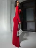DFLlifes One Shoulder Dress High Split Backless Solid Long Sleeve Sexy Evening Party Elegant Dresses for Woman Slim Robe Spring