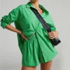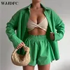 WJJDFC Cotton casual women two piece short sets summer Office za high waist green shirt suit set Orange pink fashion sets 2022