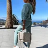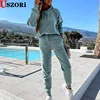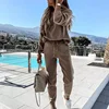 Women 2022 Fashion Tracksuit Autumn And Winter Long Sleeved Plush Hooded Loose Sweater Slim Fit String Pants Two-piece Set