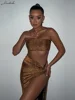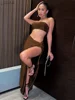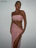 Macheda Spring 2022 new off-the-shoulder skin-tight crop top is paired with a low-waisted thigh-low sexy over-the-knee skirt