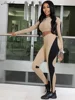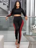 Macheda Spring Half high collar slim crop top high waist slim pants Women's two piece set Double color slim stretch women's set