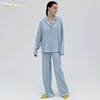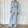Clacive Spring Long Sleeve Shirt Pants Set Woman 2 Pieces Elegant Loose High Waist Pants Set Women Casual Straight Trouser Suits