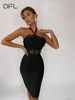 DFLlifes Lace Women's Dress Halter Lace Solid Woman Clothes Elegant Dresses for Woman Casual Slim Robe Sexy Spring Summer 2022