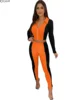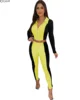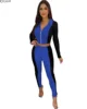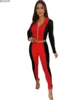 RStylish Patchwork Two Piece Set Zip Long Sleeve Crop Top Skinny Pencil Pants Women Clothing Autumn Winter Tracksuit