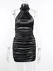 DFLlifes Halter Women's Dress Backless Solid Elegant Dresses for Woman Slim Ruching Sexy Club Spring Summer Woman Clothes 2022