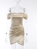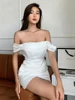 DFLlifes Backless Women's Dress Ruched Slash Neck Solid Slim Elegant Dresses for Woman Fishbone Casual Robe Sexy Spring Summer