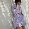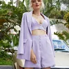 Women Blazer 3 Pieces Set Suits One Button Mid Long Blazer Long Sleeve Loose Shorts Short Pants High Waist Boyfriend style Autum