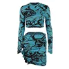 Clothes for New Year 2022 Fashion Print Contrast Long Sleeve T-shirt Slim Bag Hip Short Skirt Suit Women Female Clothing