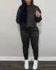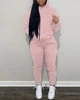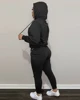 2022 Women Spring Autumn Casual Loose 2 Piece Set Pocket Design Long Sleeve Hooded Sweatshirt & Pants Set