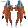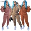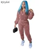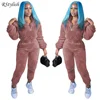 RStylish Women Winter Casual Tracksuit Thick Plush Two Piece Set Long Sleeve Zipper Pullover Tops+Pants Sports Suit