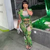 Zoctuo Women Mesh See Through Printed Crop Tops Long Pants Two Piece Set Suit Outfit 2022 Summer Clothes Wholesale Items