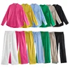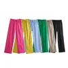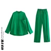 2022 Women Simply Solid Green Color Pockets Casual Straight Pants Female Chic Elastic Waist Lace Up Summer Long office Trousers