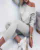Suit ladies casual sportswear 2021 autumn and winter sequined chain loose casual sweater women's high waist trousers 2-piece set