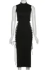 DFLlifes Bandage Women's Dress Solid High Split Sleeveless Sexy Clubwear Spring Summer Woman Clothes Slim Dresses for Woman 2022