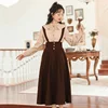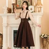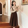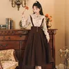 Spring Autumn Two Piece Set Women Japanese Style Long Sleeve Ruffle Plaid Shirt And High Waist Long Pleated Suspender Skirt Sets